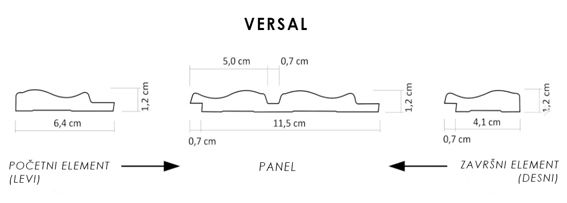 Wave rhythm: 5.0 cm with 0.7 cm recess